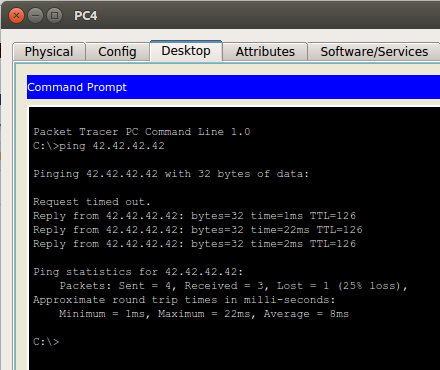 R4(config)#access-list 100 permit icmp 30.30.30.0 0.0.0.255 host 42.42.42.42 R4(config)#access-list 100 deny icmp 20.20.20.0 0.0.0.255 host 42.42.42.42 R4(config)#access-list 100 permit tcp 20.20.20.0 0.0.0.255 host 42.42.42.42 eq www R4(config)#access-list 100 deny tcp 30.30.30.0 0.0.0.255 host 42.42.42.42 eq www R4(config)#access-list 100 permit ip any any R4(config)#int g0/0 R4(config-if)#ip access-gr 100 out R4(config-if)#exiKemudian kita konfigurasi Static IP Address pada Server.